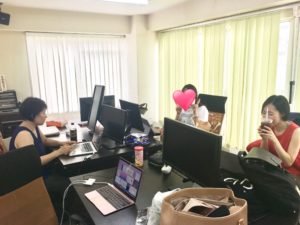 おしゃべりしてるときもあるけれど、全員ガチでビジネスには取り組んでいるのでタイピング音だけ響き渡る時間もあり…