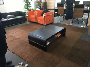 前日に2人もの方から、朝の準備手伝いにいきます!とのメッセージを頂いて、作業会開始前に一緒に掃除をして、マットをひいてくれたりしてくださいました。おかげで事務所がとても綺麗に。