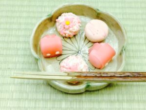 ↑この写真は春の茶会のときの生菓子です。ピンク統一は勿論可愛かったですが、桜モチーフのものやランドセルだったりと、とても可愛いお菓子でした♡