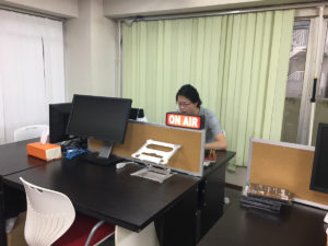 旭さん、ON AIR。こういう小道具がたくさんある事務所です。