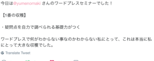 先日、夢野まきさんによる、ワードプレス1DAYセミナーが行われ、私もサポートスタッフとして参加しました。
